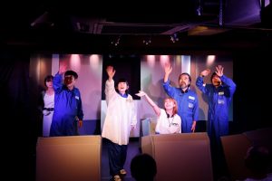 うわの空・藤志郎一座は1998年旗げの東京のコメディ劇団です。台本がない『口立て』で作品を作っていくのが大きな特徴。セリフ回しは余計な力が入らないリアルさを持ち、独特の空間を生み出しています。